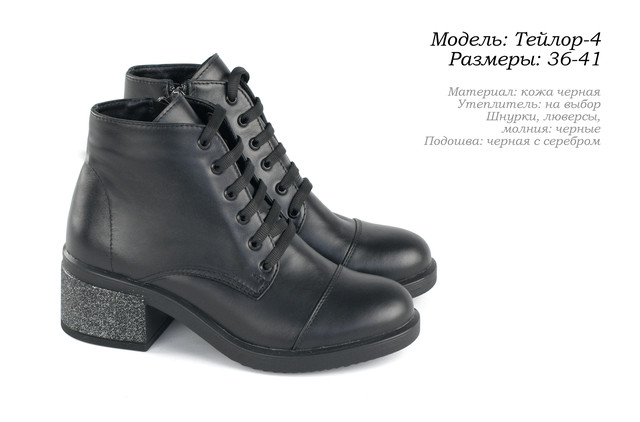 - Для моделі Тейлор-4 чорна підошва знята з виробництва, продовжує працювати чорна з срібним напиленням на підборах: