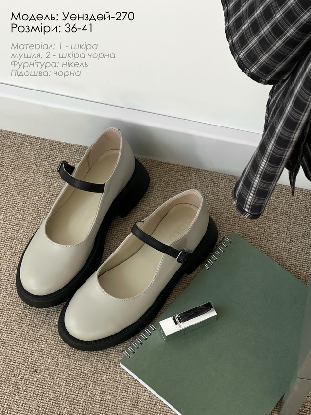 Туфлі Уенздей-270 - класичні Мері Джейн з ремінцями. Зручна фіксація на підйомі, округлий комфортний мис, легка підошва і незмінно натуральні матеріали верху та підкладки.